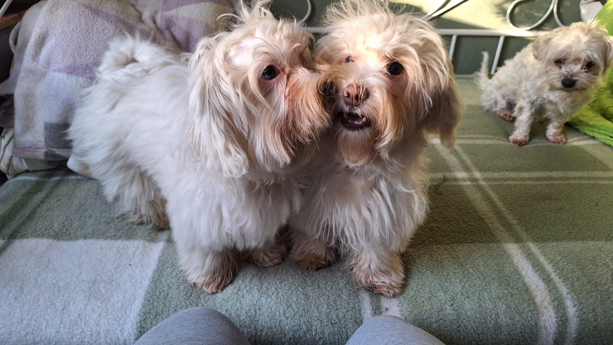 Waltraud und Wilma wurden am Tierheim ausgesetzt. Mittlerweile wissen wir auch, warum. Wie es öfter bei weißen Tieren vorkommt, sind die Beiden taub.