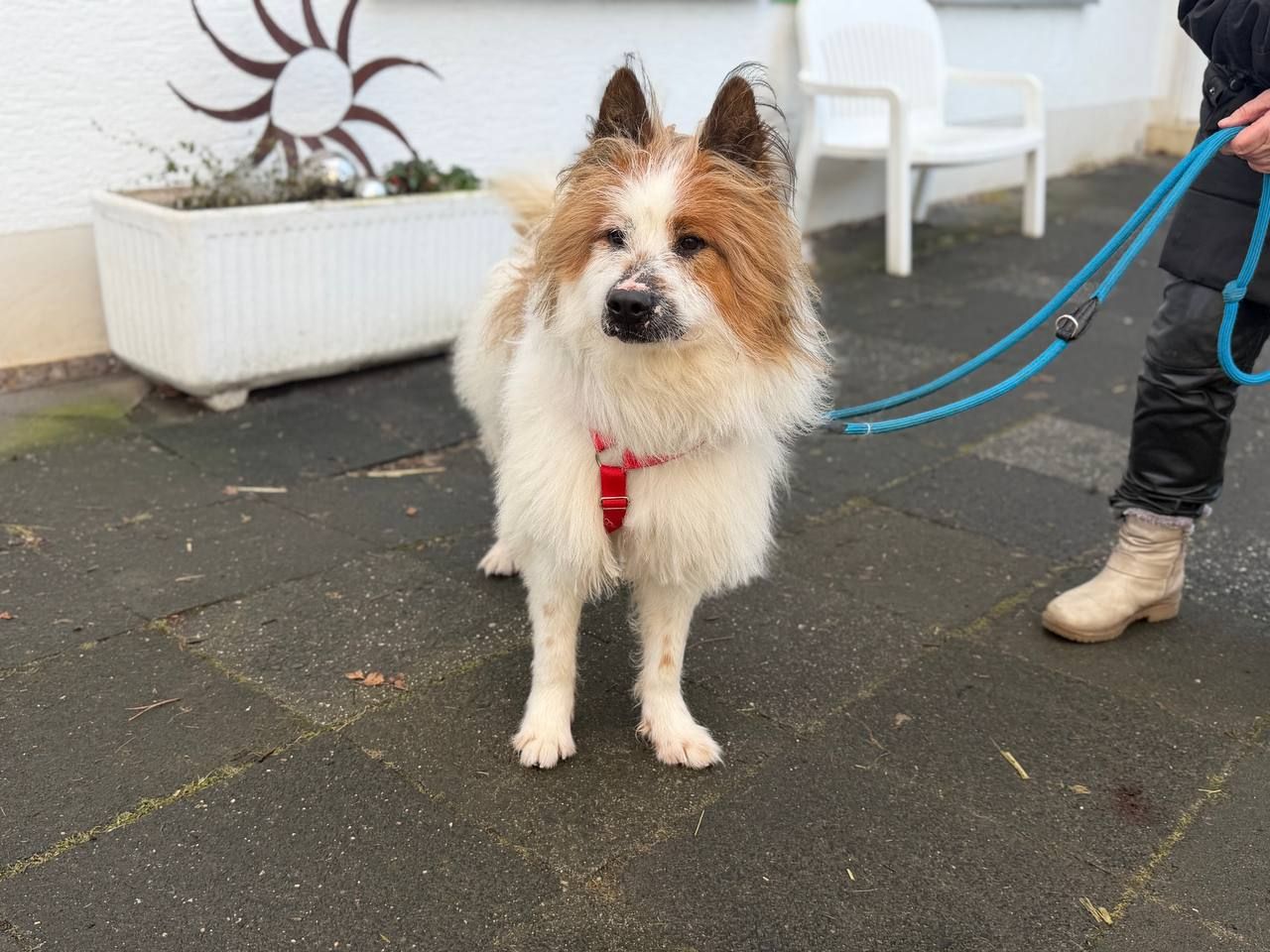 Timmys Halterin ist leider erkrankt, und so kam der hübsche Timmy über Umwege zu uns. Er soll ein Elo und ca. 10 Jahre alt sein. Nach anfänglicher Unsicherheit zeigt er sich bei uns lieb und umgänglich. Auf andere Hunde legt er keinen Wert und möchte eher wieder Einzelprinz werden. Wir schätzen ihn, bis auf die Fellpflege, als pflegeleichten Hund ein.