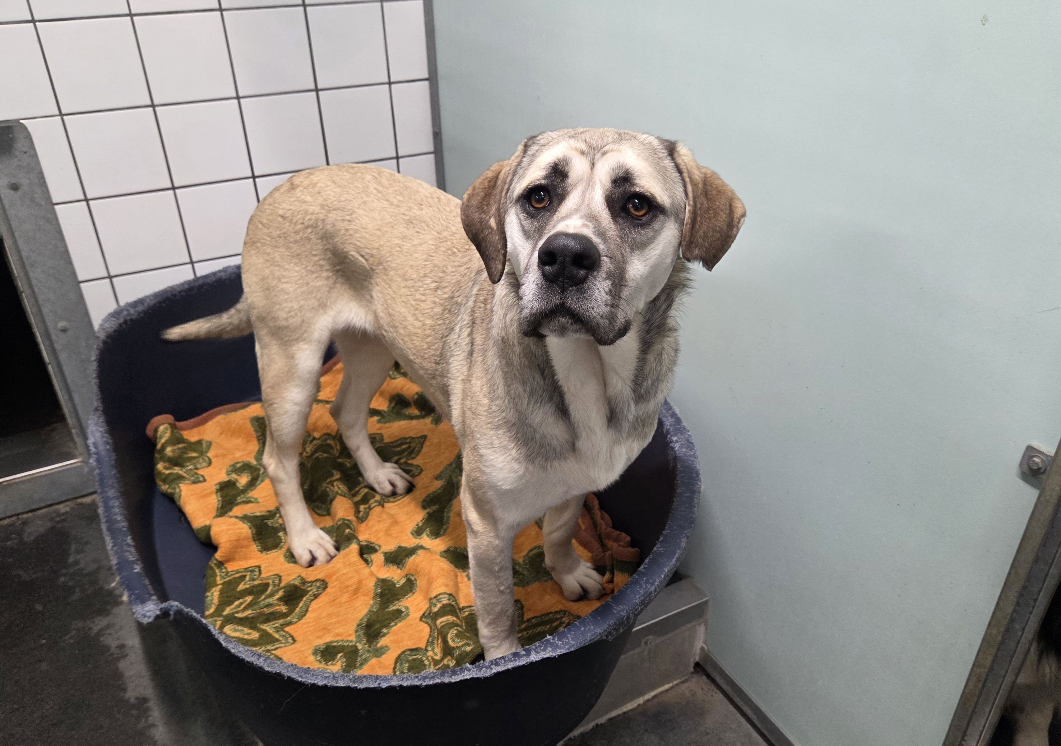 Och, Maya...was schaust Du immer so traurig? Es soll doch jetzt aufwärts gehen! So viele Sorgenfalten! Maya ist in einem kleinen rumänischen Shelter aufgewachsen. Sie kennt schon das "Gassi gehen". Das macht es für unsere Spaziergänger immer etwas leichter. Mit den Hunden in ihrem Zwinger versteht sich Maya gut. Wir könnten sie uns als Familienhund vorstellen.