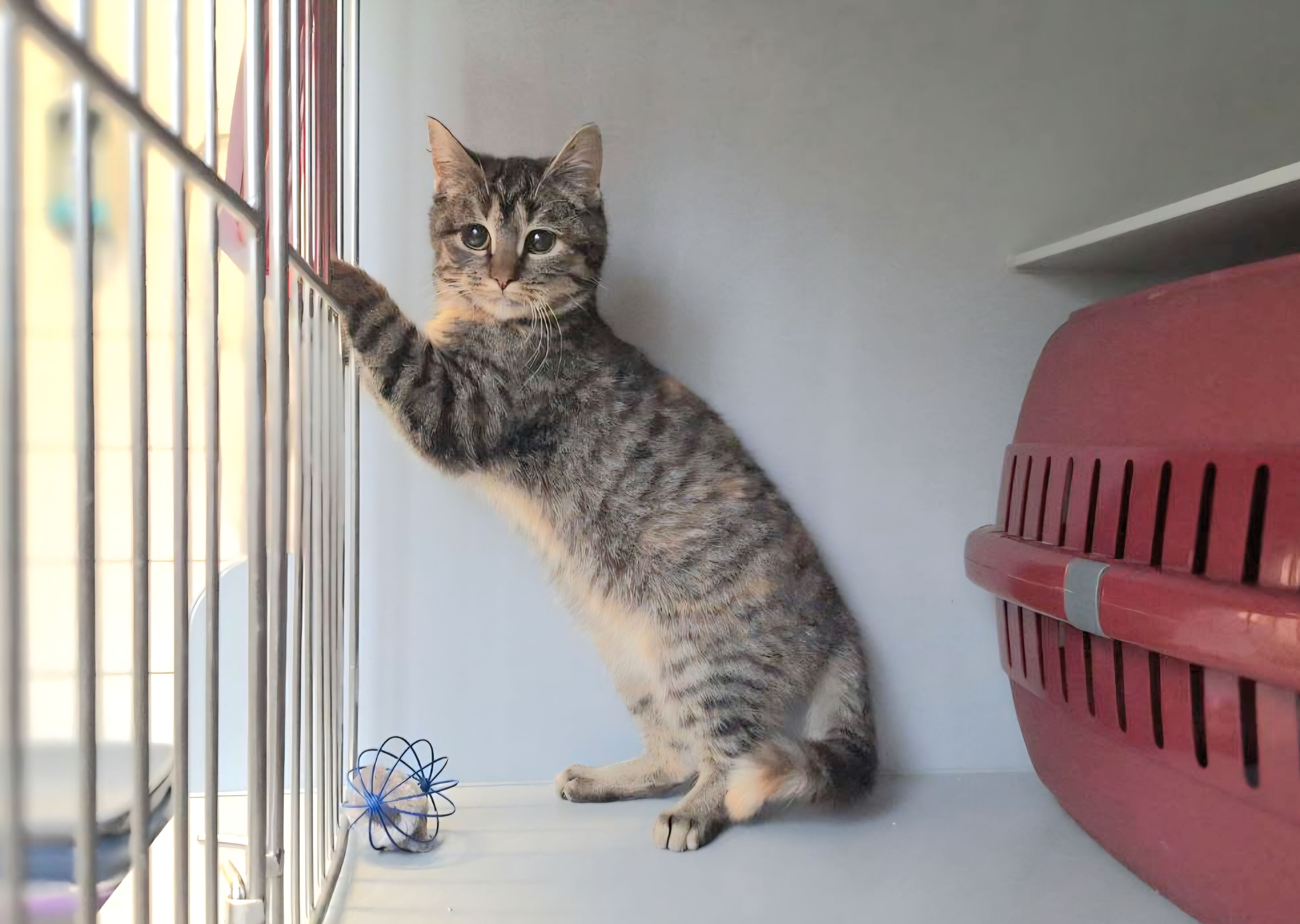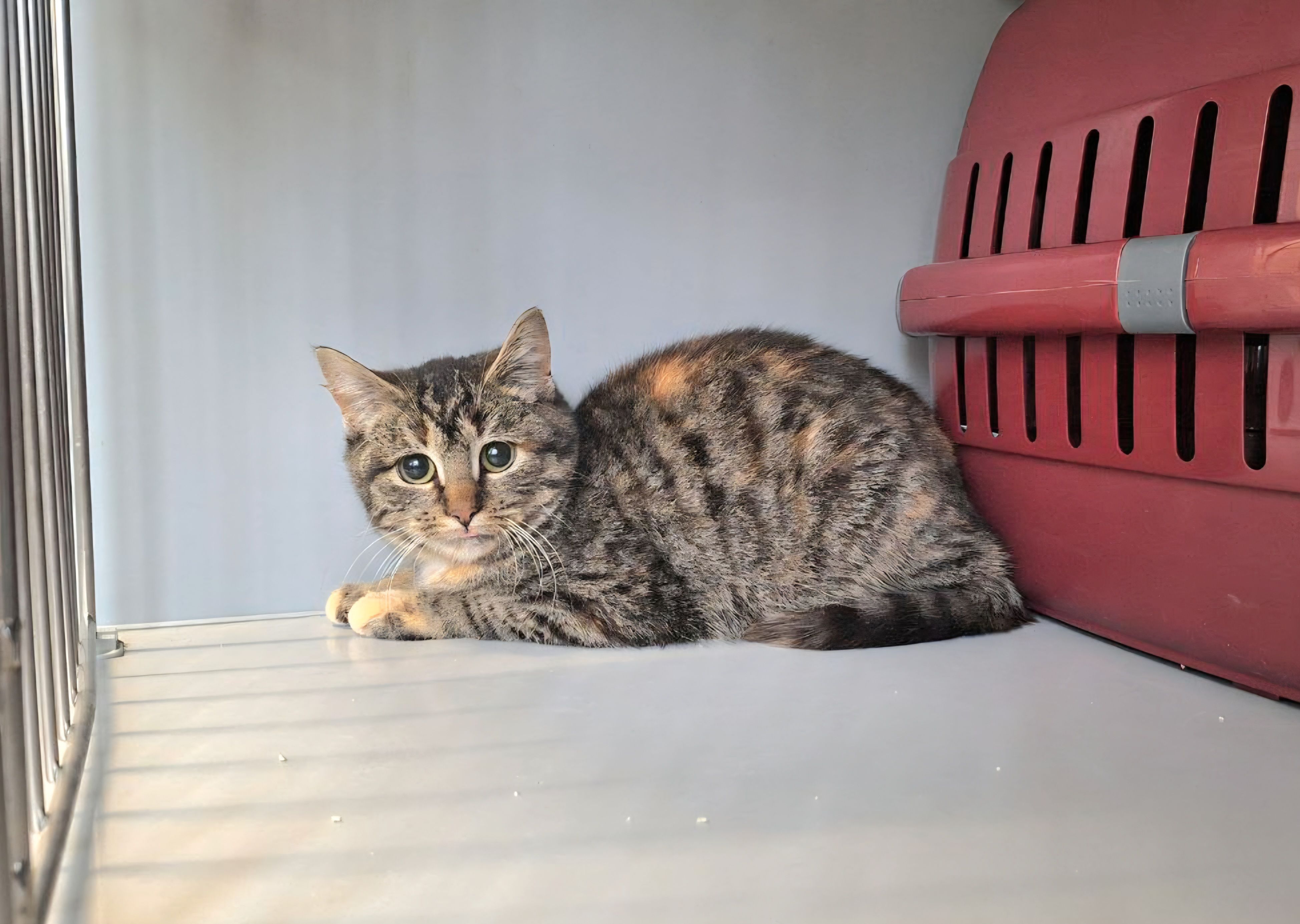 Eva wurde, wie Dutzende anderer Katzen auch, an den Fischteichen in Iserlohn Refflingsen eingefangen. Ein Fass ohne Boden. Trotz durchgehender Kastrationen, tauchen immer wieder neue Katzen auf. Eva scheint nicht ganz wild zu sein. Sie kennt eindeutig menschlichen Kontakt. Wir möchten gerne versuchen, sie in ein geduldiges, liebevolles Zuhause zu vermitteln. Sie sollte mit/zu einer anderen Katze/Kater vermittelt werden; entweder in ein Haus oder eine große Wohnung mit gesichertem Balkon oder, nach langer Eingewöhnung,mit späterem Freigang. Wer gibt ihr eine Chance ?🙏🏻