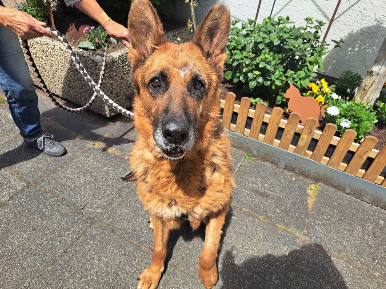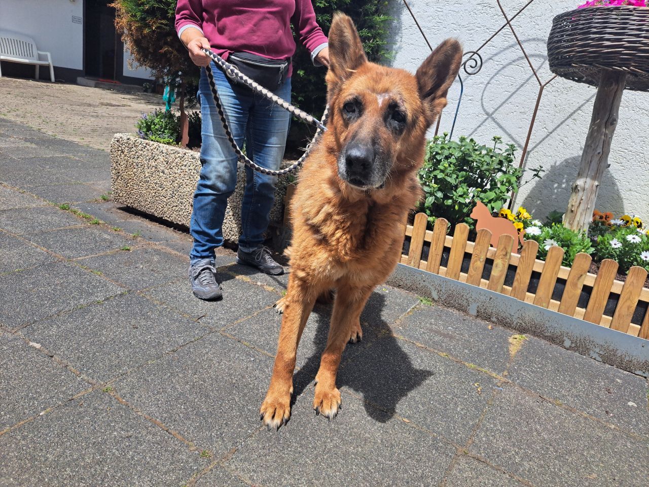 Mathilde, was hast du wohl schon alles erlebt? Viel zu dünn, schlechtes Gangbild, die Augen schon etwas trüb. Vom Kopf her aber sehr gut dabei. Wir schätzen sie auf 10–11 Jahre ,viele harte Jahre scheinen hinter ihr zu liegen. Sie kommt aus einem rumänischen Shelter und wurde dort schwer gebissen. Sie lässt sich gut anfassen, ist freundlich mit anderen Hunden und sucht einfach einen Platz, wo sie zur Ruhe kommen darf.🙏🏻